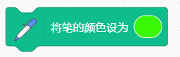 小明非常喜欢画画,他想当一名画家,在绘画开始之前,可以使用下面积木设置画笔的颜色为绿色。