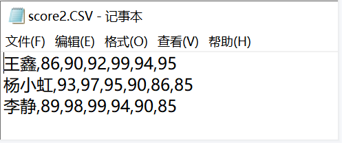[['王鑫', '86', '90', '92', '99', '94', '95'], ['杨小虹', '93', '97', '95', '90','86', '85'],
