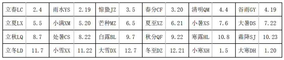 如果当天恰好是⼀个节⽓,输出这个节⽓的汉语拼⾳缩写,如当天不是节⽓则输出下⼀个节⽓的汉语拼⾳缩写。